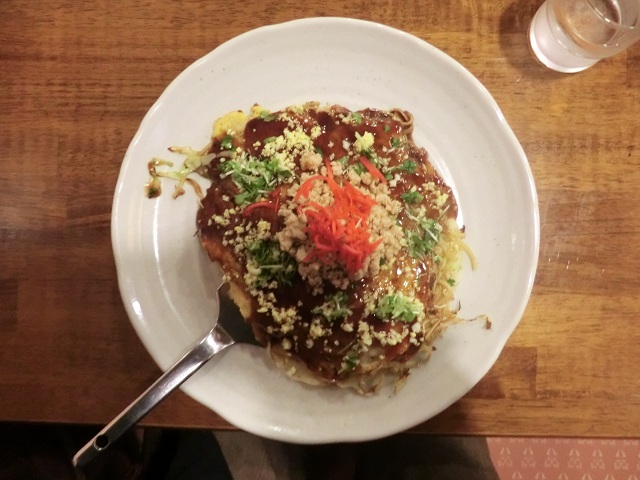 一日目のお昼には、お好み焼き「ほぼろ」 こと 「ほり川」 で、限定メニューの「ほぼろ焼き」をいただきました。